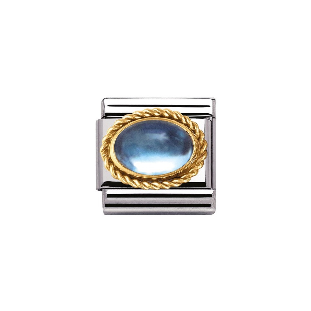 Moduł do klasycznej komponowanej bransoletki Nomination wykonany ze stali szlachetnej z topazem w oblamówce z plecionki 18-karatowego złota.