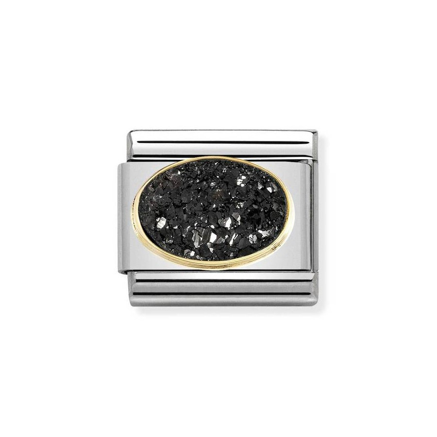 Moduł do klasycznej komponowanej bransoletki Nomination wykonany ze stali szlachetnej z czarnym pyłem w oblamówce 18-karatowego złota.