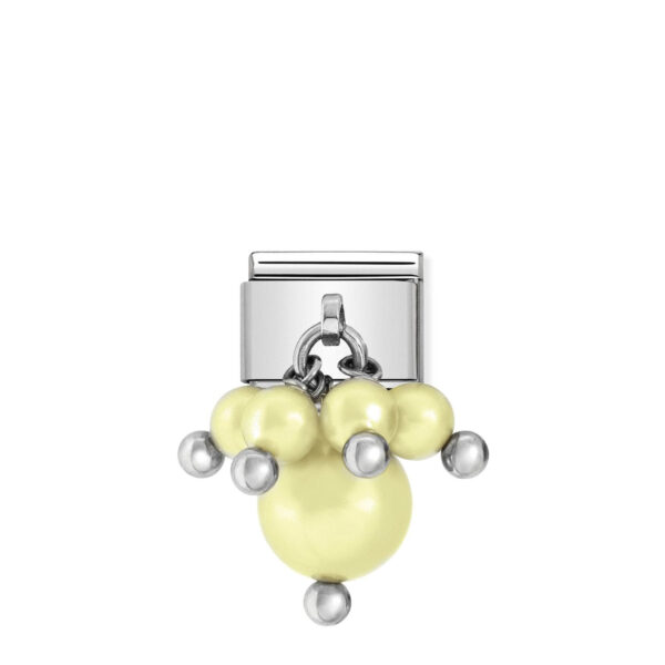 Moduł do klasycznej komponowanej bransoletki Nomination wykonany ze stali szlachetnej z wiszącymi żółtymi perełkami Swarovskiego.