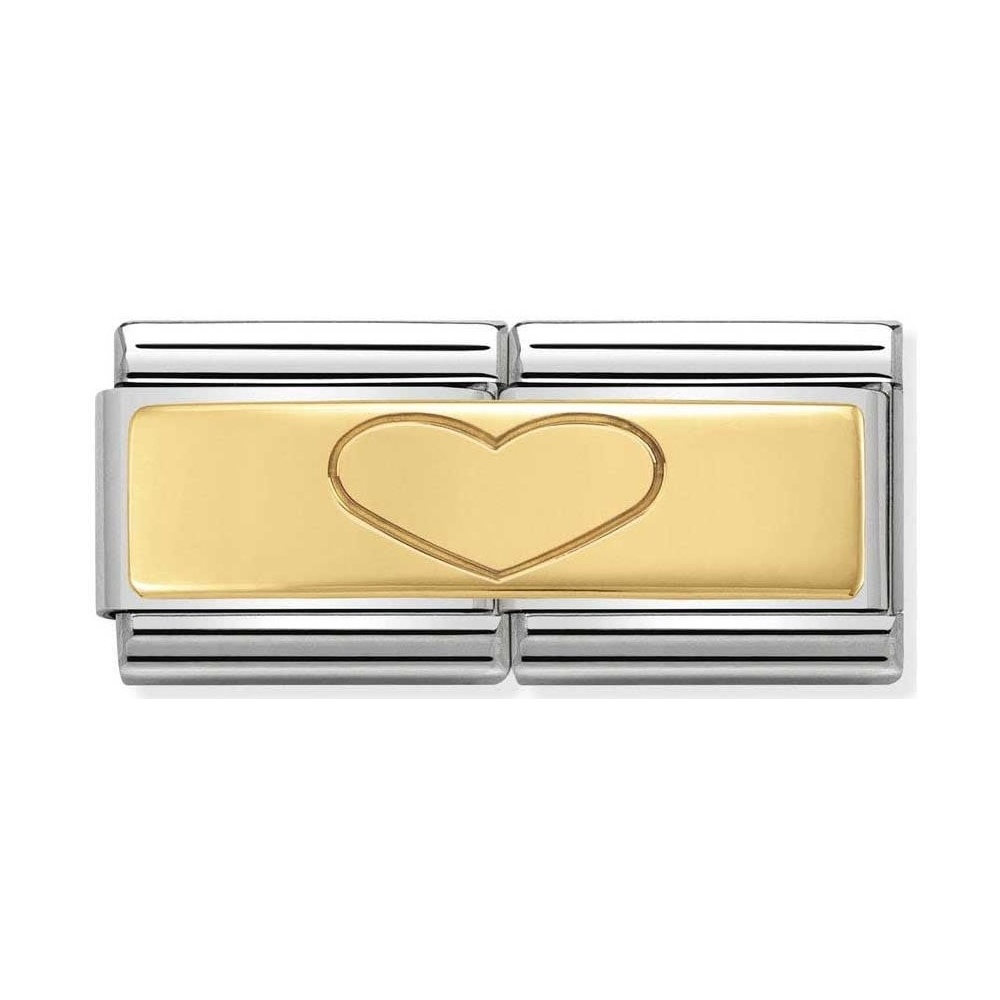 Podwójny moduł do klasycznej komponowanej bransoletki Nomination wykonany ze stali szlachetnej z wygrawerowanym sercem z 18-karatowego złota.