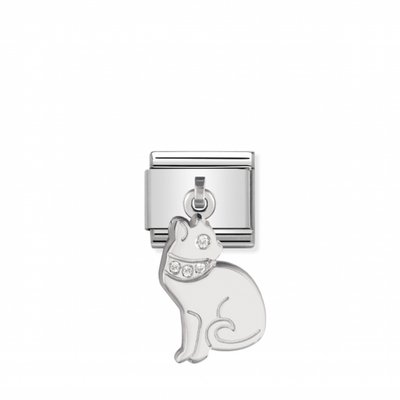 Moduł do klasycznej komponowanej bransoletki Nomination wykonany ze stali szlachetnej z wiszącym kotem z cyrkoniami.