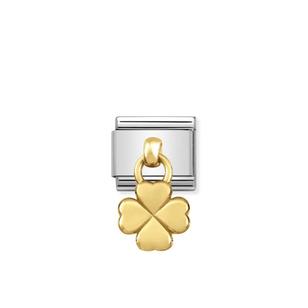 Moduł do klasycznej komponowanej bransoletki Nomination wykonany ze stali szlachetnej z wiszącą koniczyną z 18k złota.