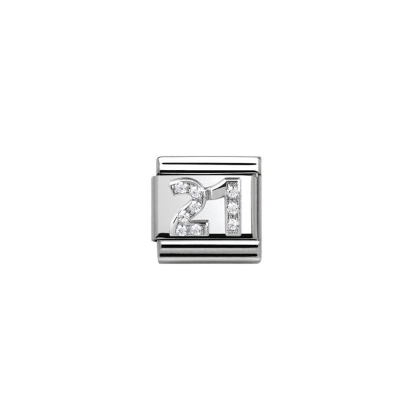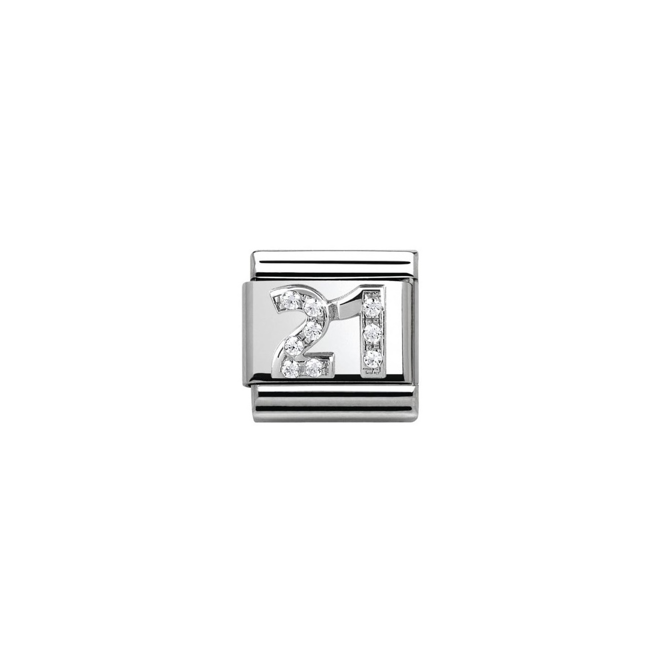 Oryginalny element do bransoletki komponowanej Nomination Composable Classic ze stali szlachetnej z liczbą 21 ze srebra próby 925 z cyrkoniami.