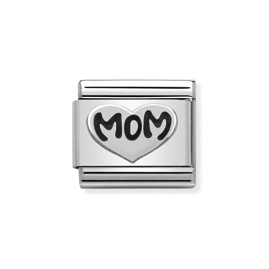 Oryginalny moduł do bransoletki komponowanej Nomination Composable Classic ze stali szlachetnej z sercem i napisem “MOM” ze srebra pr. 925.