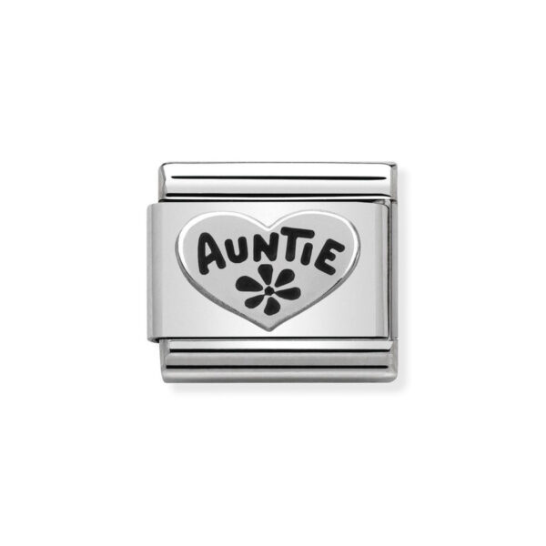 Oryginalny moduł do bransoletki komponowanej Nomination Composable Classic ze stali szlachetnej z sercem i napisem “AUNTIE” ze srebra pr. 925.
