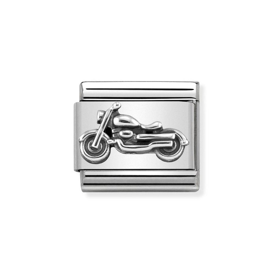 Oryginalny moduł do bransoletki komponowanej Nomination Composable Classic ze stali szlachetnej z motocyklem ze srebra pr. 925.