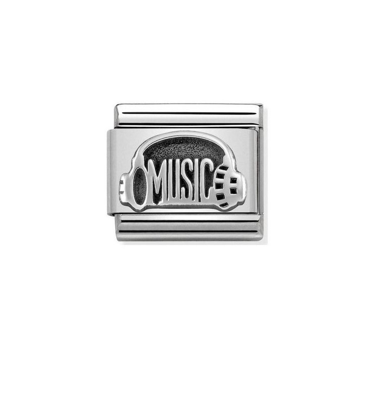 Oryginalny moduł do bransoletki komponowanej Nomination Composable Classic ze stali szlachetnej z słuchawkami i napisem “MUSIC” ze srebra pr. 925.
