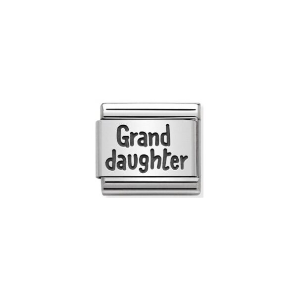 Oryginalny moduł do bransoletki komponowanej Nomination Composable Classic ze stali szlachetnej z napisem “Grand daughter” ze srebra pr. 925.