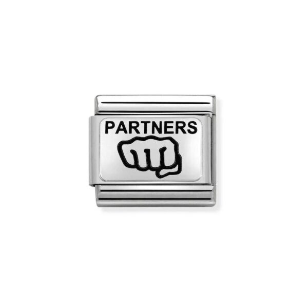 Oryginalny moduł do bransoletki komponowanej Nomination Composable Classic ze stali szlachetnej z napisem “PARTNERS” ze srebra pr. 925.