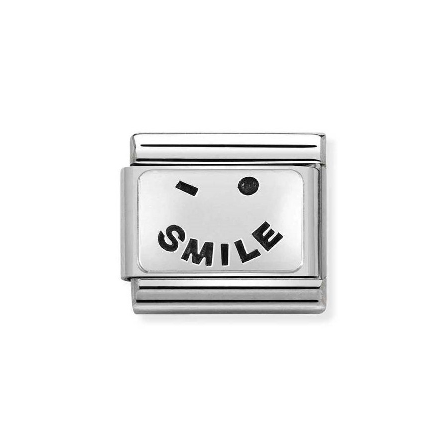 Oryginalny moduł do bransoletki komponowanej Nomination Composable Classic ze stali szlachetnej z napisem SMILE ze srebra pr. 925.