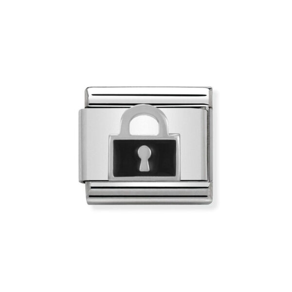 Oryginalny moduł do bransoletki komponowanej Nomination Composable Classic ze stali szlachetnej z kłódką ze srebra pr. 925 i emalią.