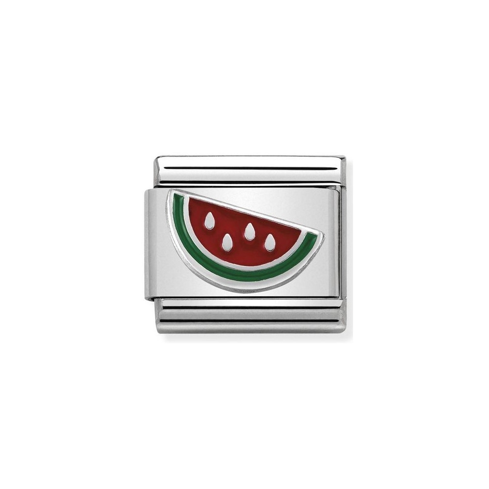 Oryginalny moduł do bransoletki komponowanej Nomination Composable Classic ze stali szlachetnej z arbuzem ze srebra pr. 925 i emalią.