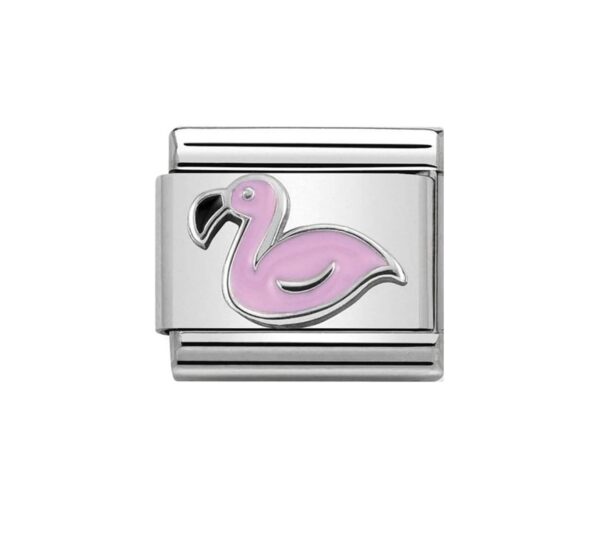 Oryginalny moduł do bransoletki komponowanej Nomination Composable Classic ze stali szlachetnej z flamingiem ze srebra pr. 925 i emalią.