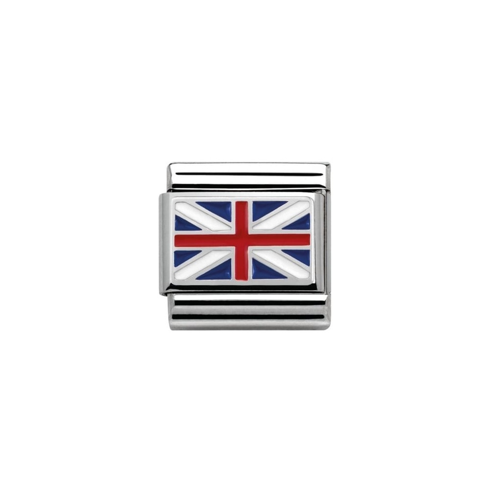 Oryginalny moduł do bransoletki komponowanej Nomination Composable Classic ze stali szlachetnej z flagą Wielkiej Brytanii ze srebra pr. 925 i emalią.