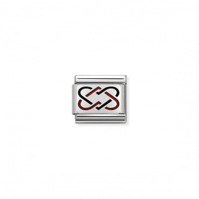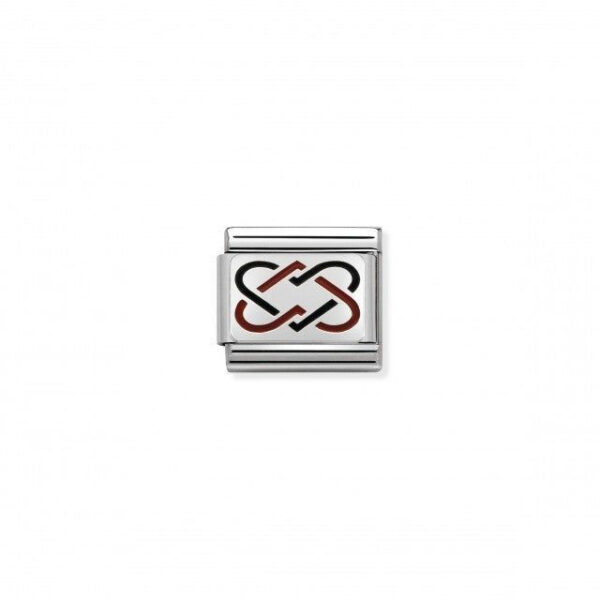 Oryginalny moduł do bransoletki komponowanej Nomination Composable Classic ze stali szlachetnej ze splecionymi sercami ze srebra pr. 925 i emalią.