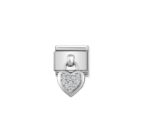 Oryginalny element do bransoletki komponowanej Nomination Composable Classic ze stali szlachetnej z zawieszką serduszko ze srebra próby 925 i cyrkonii.