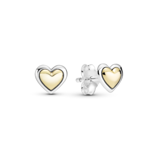 Dwutonowe Wypukłe złote kolczyki w kształcie serca PANDORA
