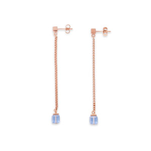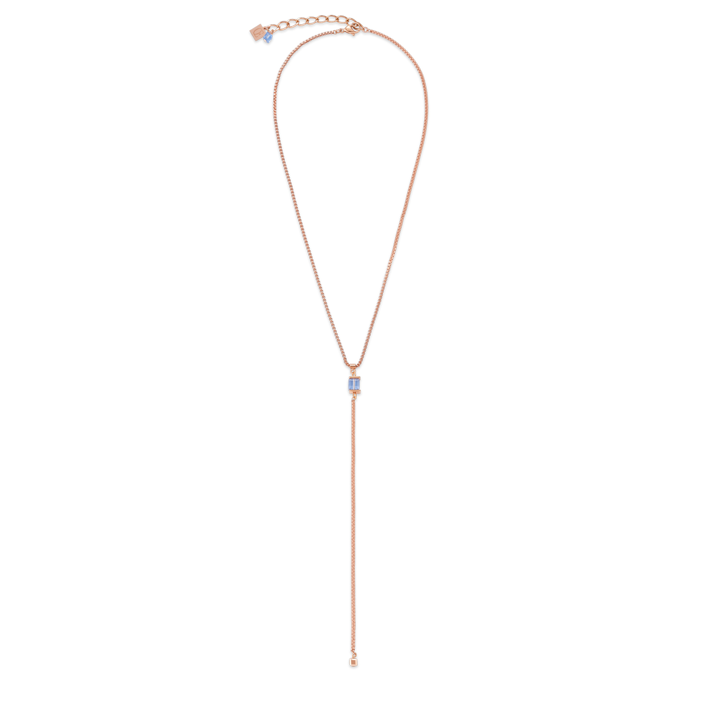 Szczególnie elegancki naszyjnik wykonany ze stali szlachetnej pokrywanej różowym złotem w połączeniu z błyszczącym kryształem Swarovski® Crystal w kolorze błękitu oceanu. Zapięcie wykonane jest ze stali szlachetnej pokrywanej różowym złotem.