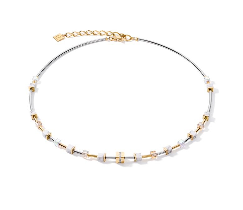 Wyrafinowany dodatek do każdej stylizacji. Ponadczasowo piękny naszyjnik z kolekcji GeoCUBE® – wykonany ręcznie z howlitu, błyszczących kryształów Swarovski® i stali szlachetnej 316L.