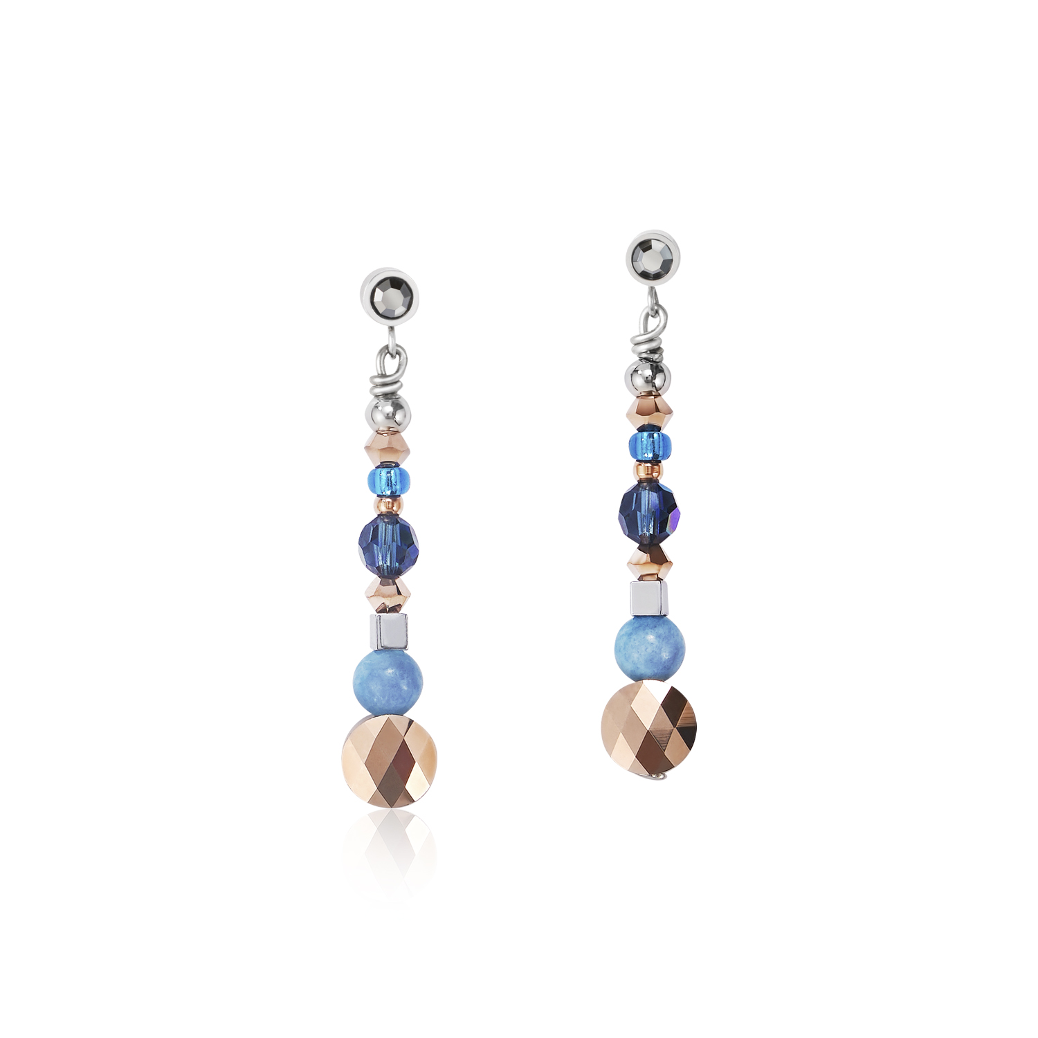 Jak zharmonizować naturalne elementy i stworzyć coś żywego: przyciągające wzrok kolczyki z wyrafinowanym amazonitem, hematytem i eleganckimi kryształami Swarovski.