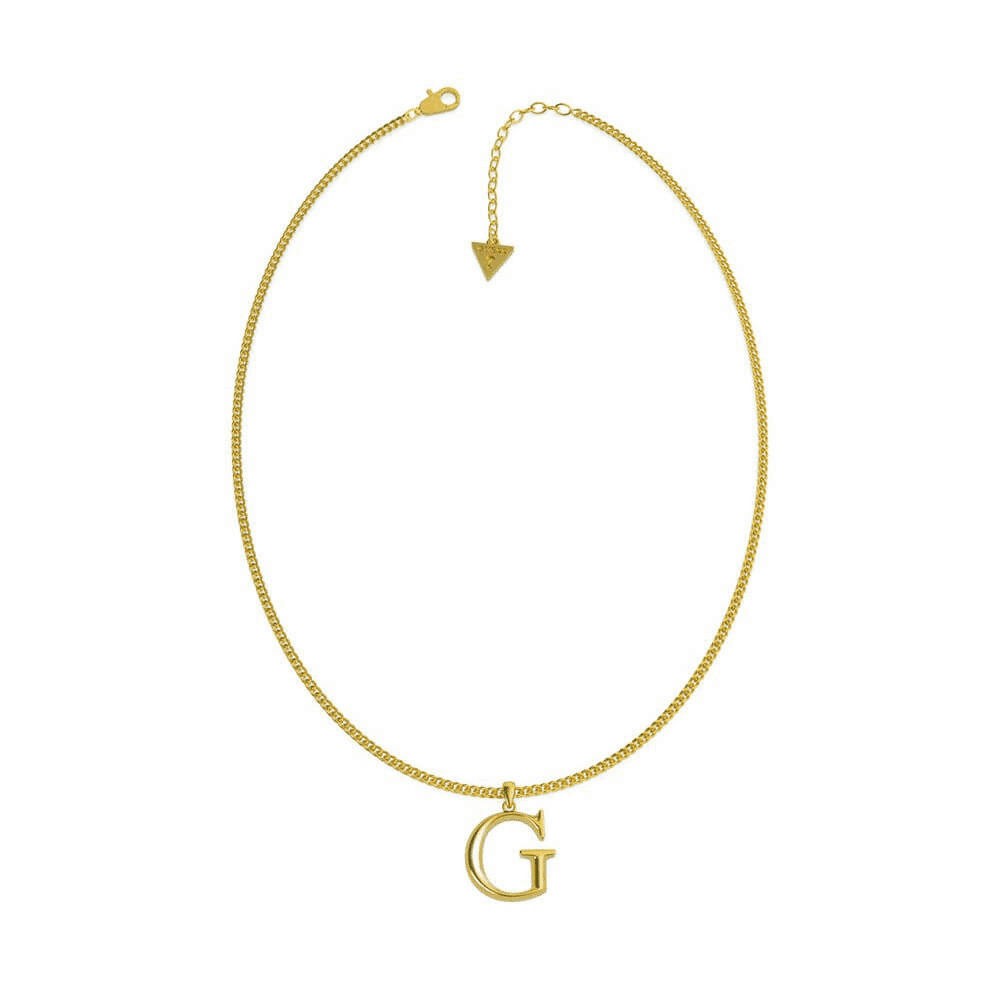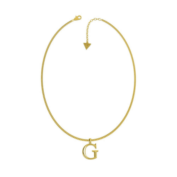 Naszyjnik z logiem Guess wykonany z platerowanej stali nierdzewnej na łańcuszku wśród którego znajduje się ozdoba “G,, . Zapięcie na karabińczyk.