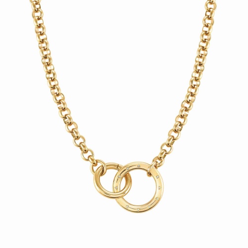 Naszyjnik wykonany ze stali szlachetnej, wykończonej powłoką PVD w kolorze żółtego złota.