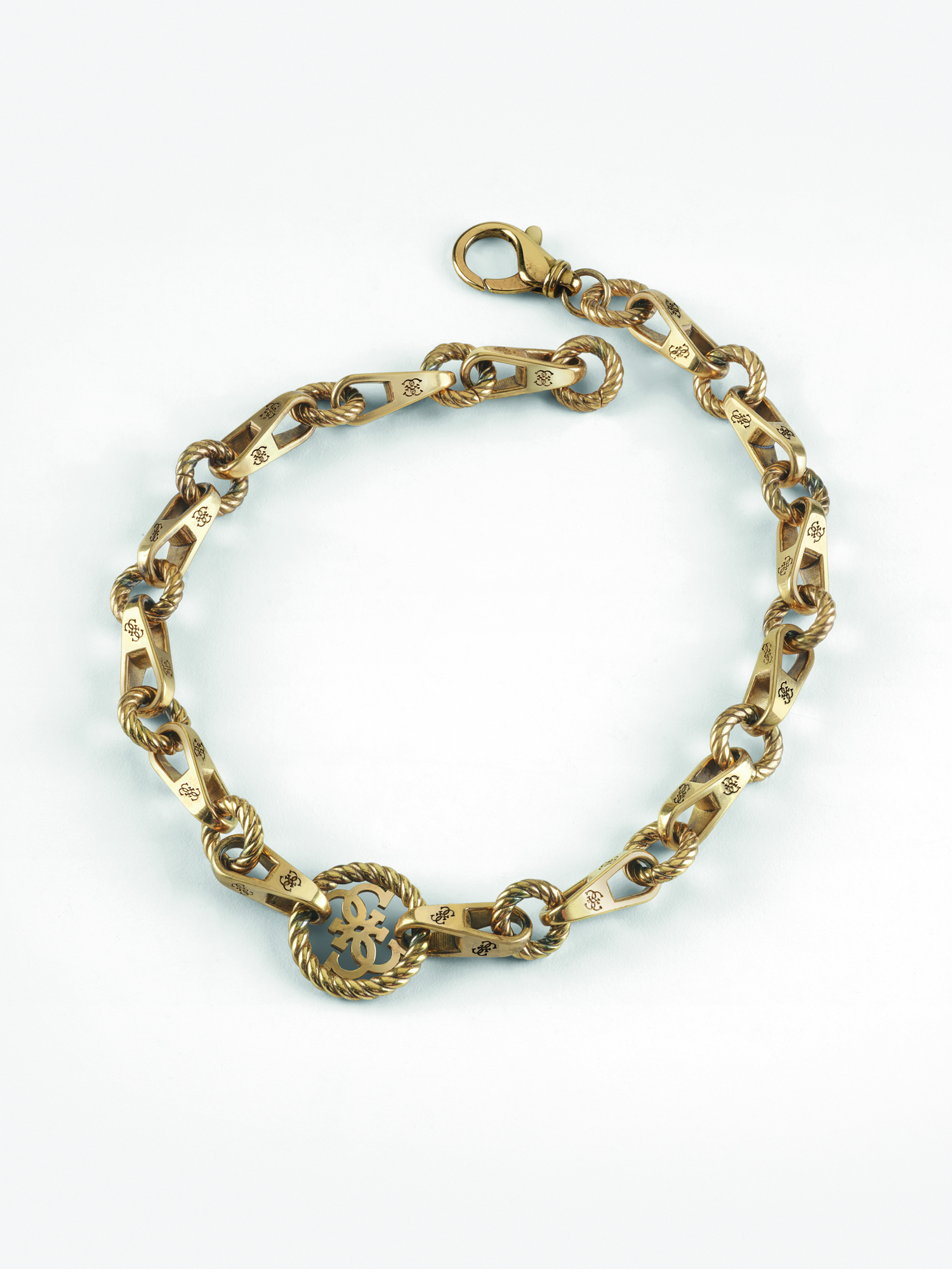 Platerowany naszyjnik ze stali nierdzewnej z charmsem w kształcie torchonu (spirali) i logo 4G. Zapięcie na karabińczyk. Antyczne wykończenie w jakości premium. Produkt platerowany żółtym złotem dla ekskluzywnego designu i wyższej odporności na uszkodzenia.