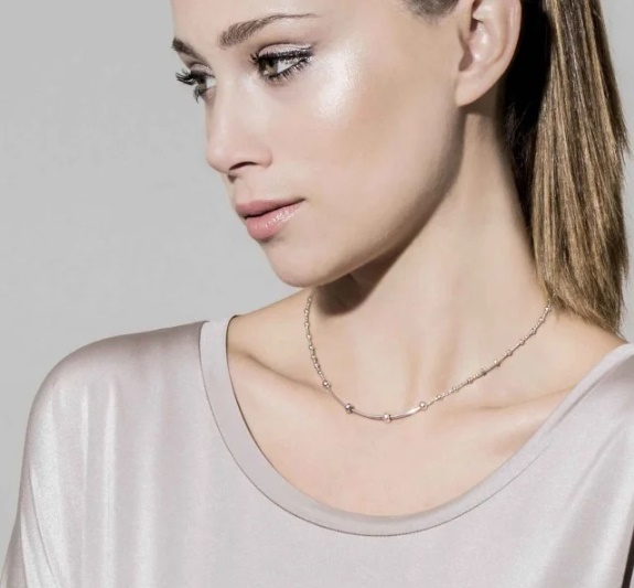 Oryginalny naszyjnik renomowanej firmy Nomination, wykonany ze srebra próby 925, rodowany. Łańcuszek z drobnymi ogniwkami oraz małymi, subtelnymi kuleczkami i przestrzenią na ozdobną zawieszkę w centrum.