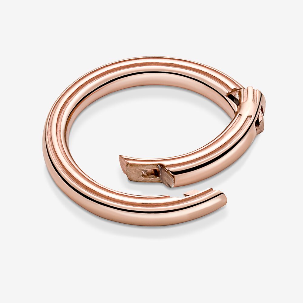 Wzbogać swoją stylizację dodając ten ozdobny łącznik Pandora ME w kształcie koła do swoich zestawów. Zawieś go na bransoletce lub naszyjniku Pandora ME i udekoruj ośmioma ulubionymi małymi zawieszkami lub trzema medalionami. Możesz go również dodać do kolczyków Pandora ME. Ten ręcznie wykańczany, wykonany z metalu platerowanego 14-karatowym różowym złotem łącznik o rowkowanej powierzchni daje nieograniczone możliwości stylizacji. Zawias ozdobnego łącznika otwiera się do wewnątrz lekko sprężynując, dzięki czemu personalizacja biżuterii jest niezwykle prosta i bezpieczna.