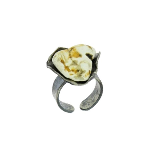 Pierścionek z mlecznym bursztynem srebro oksydowane