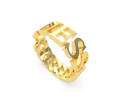 Pierścionek damski w kolorze złotym z dołem w postaci grubego łańcucha i górą w formie logo GUESS. Świetny dodatek, który urozmaici każdą stylizację.