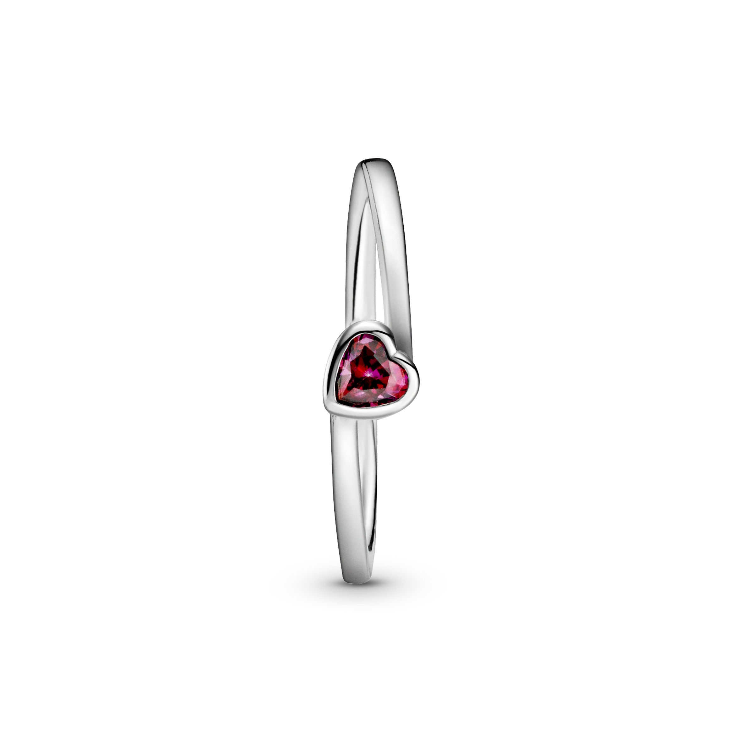 Kształt pochylonego serca sprawia, że ten pierścionek Pandora z pojedynczym czerwonym kamieniem Solitaire jest delikatny a zarazem wesoły.
