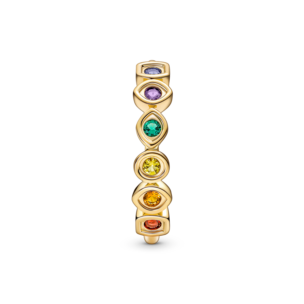 Okiełznaj moc kamieni nieskończoności dzięki pierścionkowi zainspirowanemu filmem Avengers. Nasz pierścionek platerowany 14-karatowym złotem zachwyca harmonią i blaskiem sześciu kolorowych kryształów syntetycznych, które symbolizują najcenniejsze artefakty wszechświata. Grawerunki po wewnętrznej stronie obrączki wskazują moc każdego kamienia: space (przestrzeń), reality (rzeczywistość), power (moc), soul (dusza), mind (umysł) oraz time (czas). Noś go z inną biżuterią Marvel x Pandora, a będziesz gotowa na każdą życiową potyczkę.