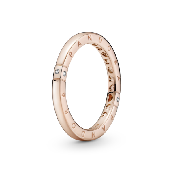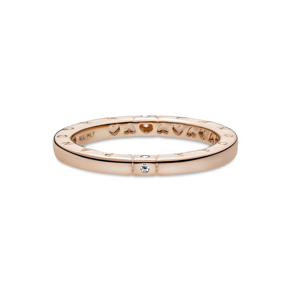 Zachwyć się prostotą piękna. Ten pierścionek o kwadratowym profilu jest platerowany 14-karatowym różowym złotem. Jego wierzch lśni blaskiem polerowanego metalu, wzdłuż obu krawędzi biegnie logo Pandora, a strona wewnętrzna jest ozdobiona sercami cut-out. Linie wytłoczone po obu stronach tworzą obramowanie dla przezroczystych cyrkonii sześciennych. Niezależnie od tego, czy szukasz pierścionka do noszenia w zestawie, czy ozdoby, która olśniewa solo, to uniwersalny wybór na każdą okazję.