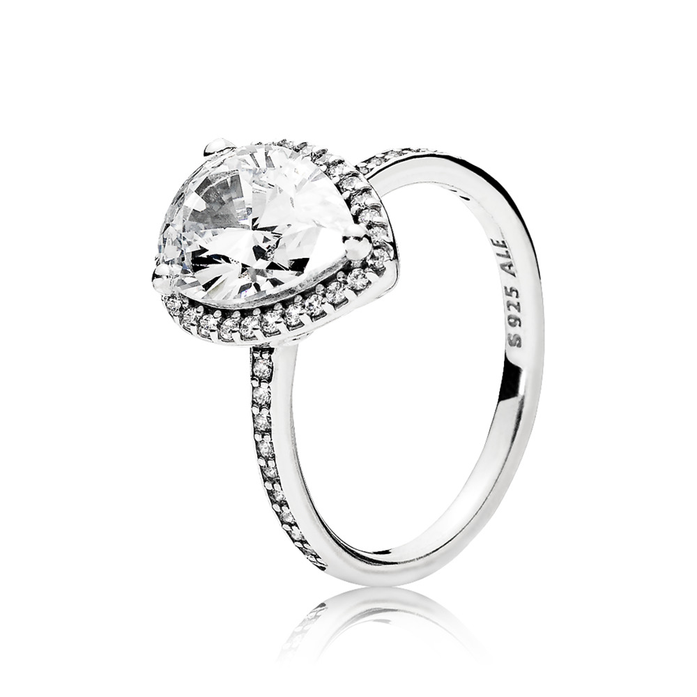 Przykuj wszystkie spojrzenia dzięki temu błyskotliwemu i mieniącemu się pierścionkowi. Kunsztownie wykonany ze srebra próby 925, z dużą cyrkonią sześcienną w kształcie łezki, załamującą światło pod różnymi kątami. Ten wyrafinowany i stylowy pierścionek Pandora świetnie wygląda noszony samodzielnie lub zestawiony z pasującymi kolczykami.