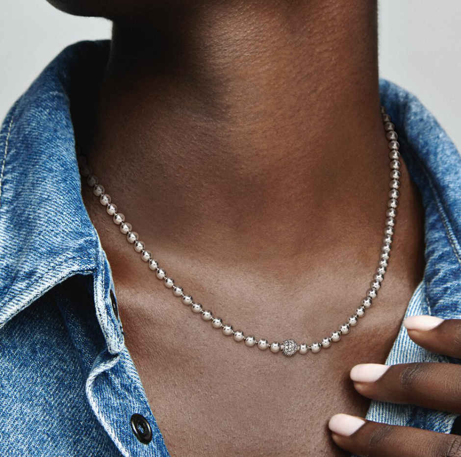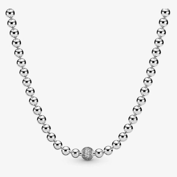 Srebrny naszyjnik z koralików, cyrkonia sześcienna PANDORA