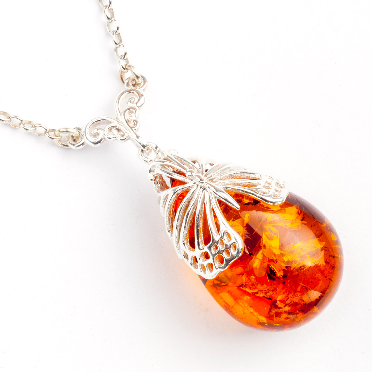 Wisiorek z bursztynem oprawiony w srebro