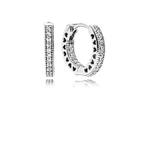 Wysadzane kamieniami kolczyki koła z motywem serc PANDORA