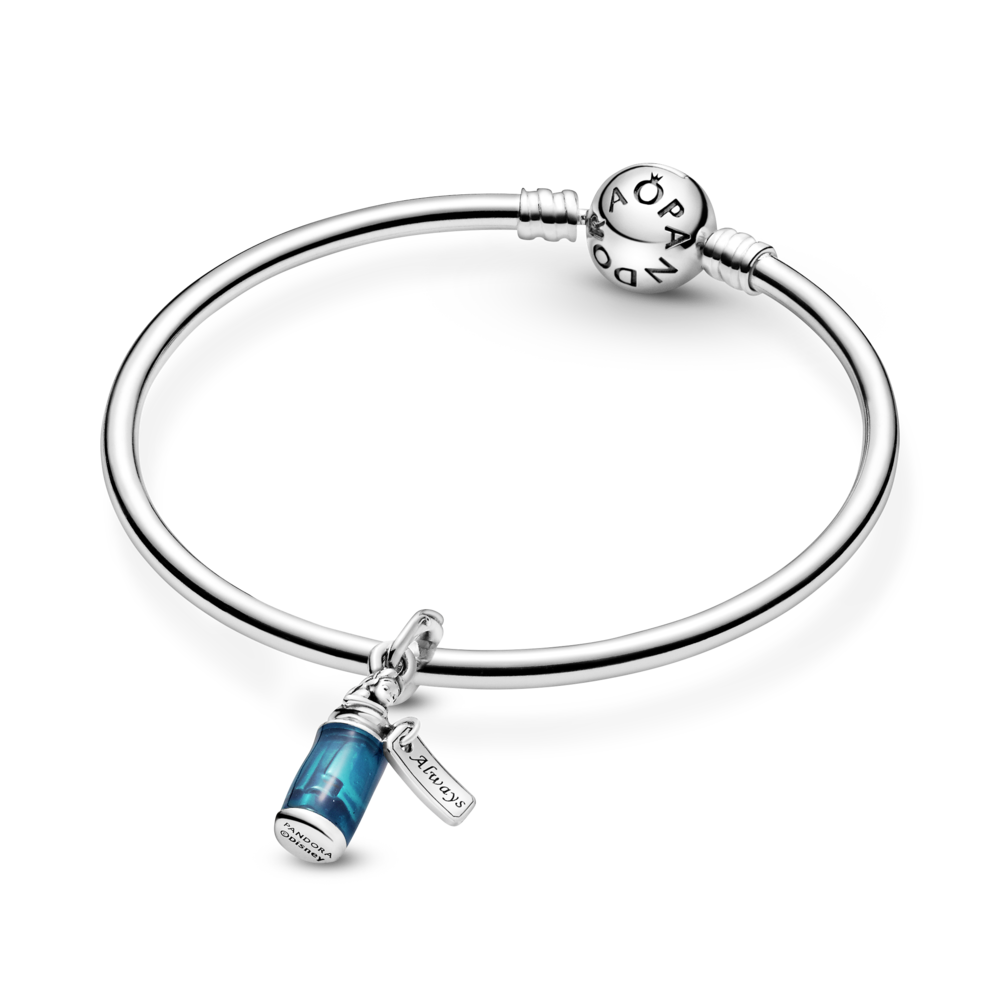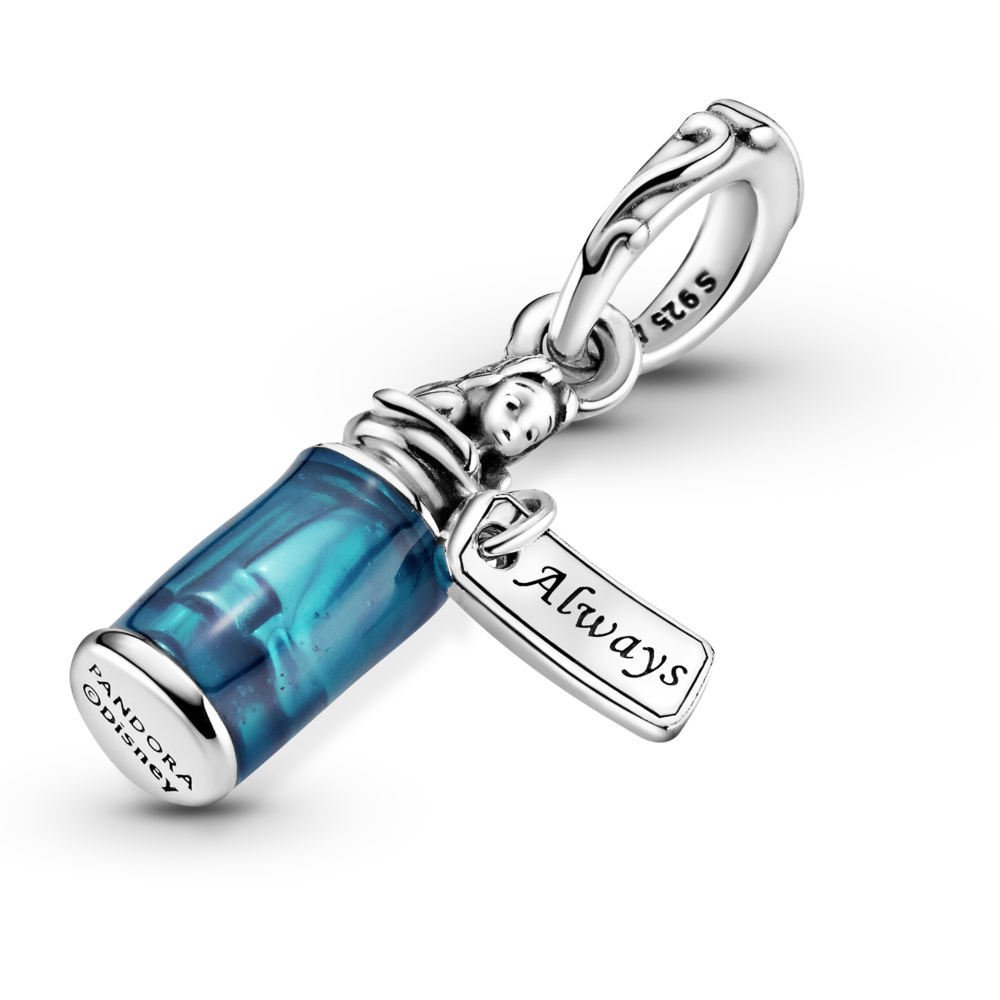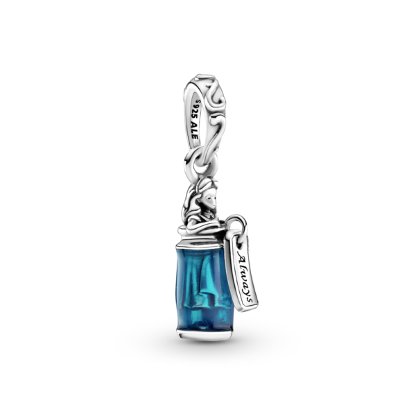 Upamiętnij ukochaną bohaterkę filmu Disneya zawieszką z napisem „Wypij mnie”. Srebrna zawieszka przywodzi na myśl niezapomnianą scenę z filmu Disneya i przedstawia Alicję w Krainie Czarów odwzorowaną w najdrobniejszych detalach – razem z twarzą, włosami, dłońmi, fartuszkiem, stopami i sukienką – we wnętrzu buteleczki z błękitnej, półprzezroczystej emalii. Filigranowa przywieszka po jednej stronie została ozdobiona grawerunkiem „Always” („Zawsze”), a po drugiej – „Curious” („Ciekawska”). Ozdób nią swoją bransoletkę, a świat nigdy nie przestanie Cię zachwycać ani zadziwiać.