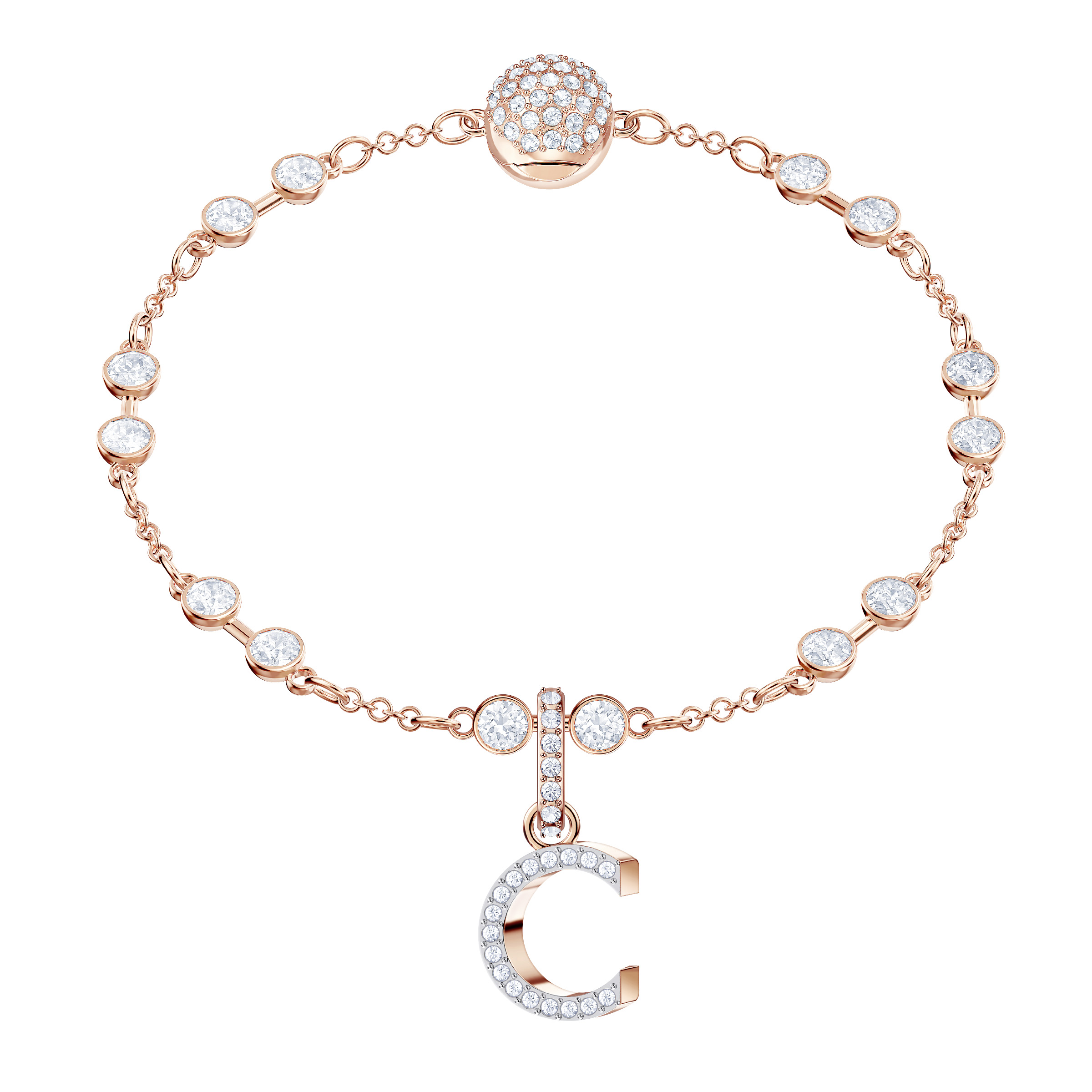 PRZYWIESZKA “C” Z KOLEKCJI SWAROVSKI REMIX, BIAŁA, W ODCIENIU RÓŻOWEGO ZŁOTA