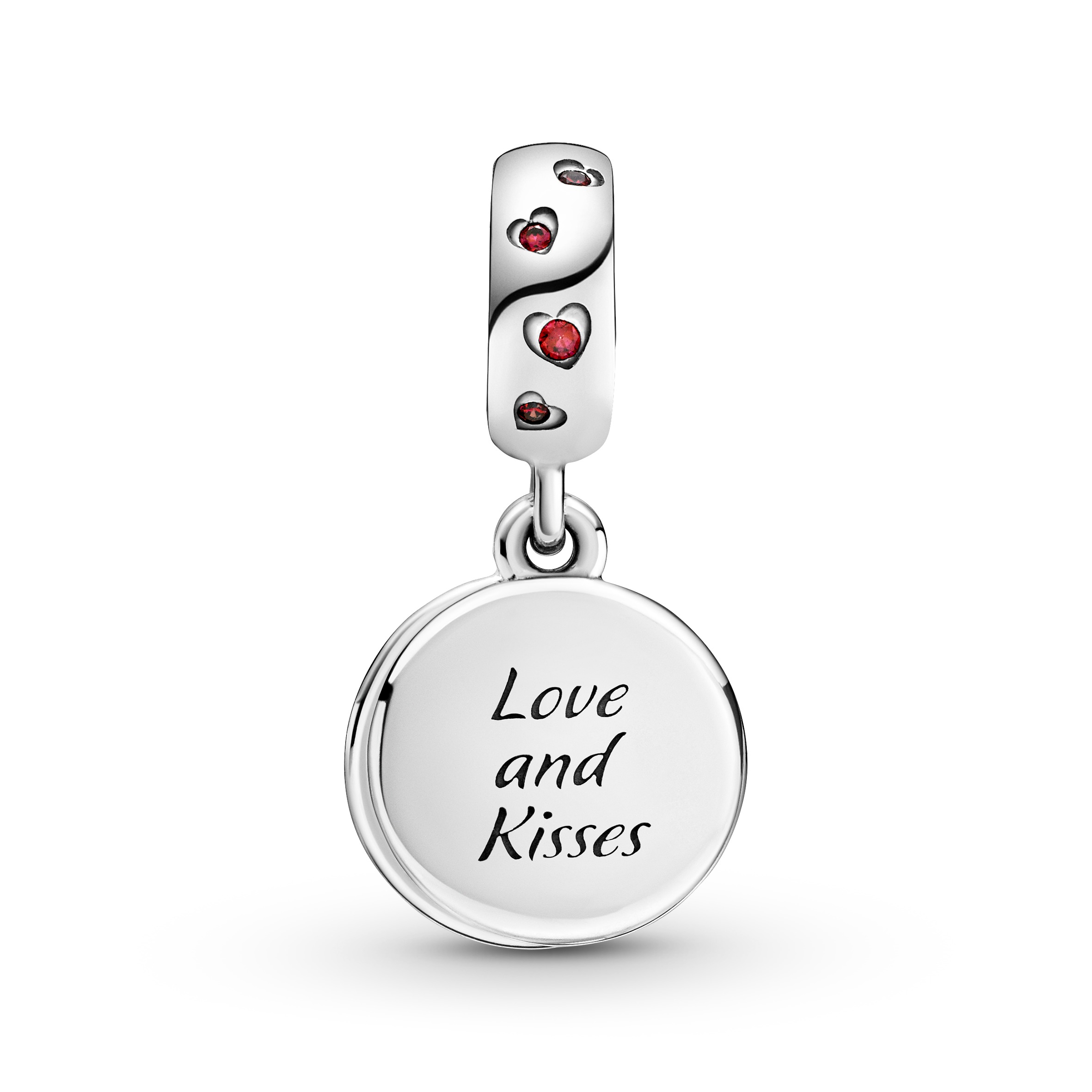 Uchwyt z grawerunkiem „Love and Kisses”, wysadzany jest czerwonymi kamieniami w kształcie serc. Po złożeniu obu zawieszek myszki dają sobie buziaka – trudno o lepszy symbol Waszego uczucia!
