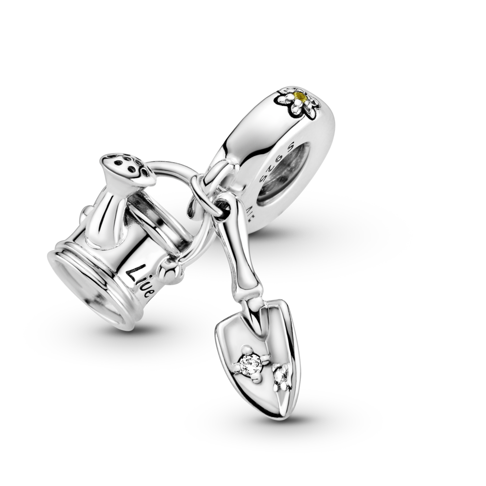 Upamiętnij swoją więź z naturą zawieszką Konewka i rydel. Wykończona ręcznie ze srebra, ma kształt konewki 3D z grawerunkiem „Live life in full bloom” („Żyj w pełnym rozkwicie”). Ostrze rydla skrzy się blaskiem dwóch przezroczystych cyrkonii sześciennych. Uchwyt został zwieńczony wypukłym kwiatem z lśniącym żółtym kryształem pośrodku. Noś go jako odę do ogrodniczek i magii natury.