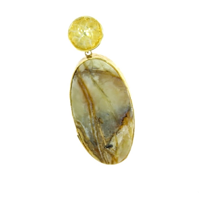Zawieszka z pozłacanego srebra z mlecznym bursztynem