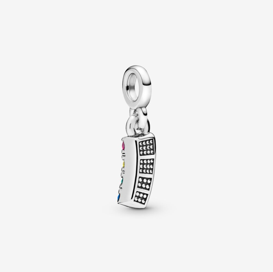 Symbol zabawy, dumy i tożsamości – noś ten element wiszący w kształcie tęczy, aby pokazywać, że świat jest pełen różnic oraz różnorodności albo jako symbol spełnionych marzeń. Możesz go interpretować na nieskończenie wiele sposobów – tylko od Ciebie zależy, jaki wybierzesz. Fantazyjny charms z etycznie pozyskiwanego srebra jest wykańczany ręcznie i wysadzany czterema optymistycznie kolorowymi kamieniami. Na odwrocie zdobi go efekt granulacji. Zbierz wszystkie ulubione symbole z kolekcji Pandora Me i wyrażaj wszystkie strony swojej natury.