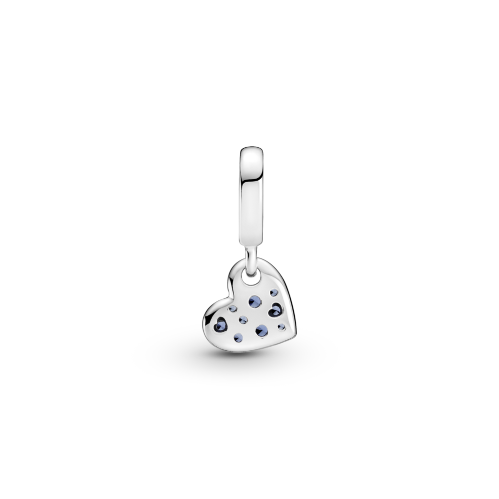 Ożyw stylizację zawieszką z niebieskim sercem pavé. Ta srebrna zawieszka z pochylonym sercem została wykończona ręcznie i jest wysadzana na przedzie niebieskimi cyrkoniami sześciennymi o różnej wielkości. Polerowany rewers ozdobiony kółkami i serduszkami cut-out. Będzie się wyróżniała na Twojej ulubionej bransoletce w otoczeniu innych srebrnych charmsów, możesz też połączyć ją z innymi kolorowymi symbolami w barwną kompozycję.