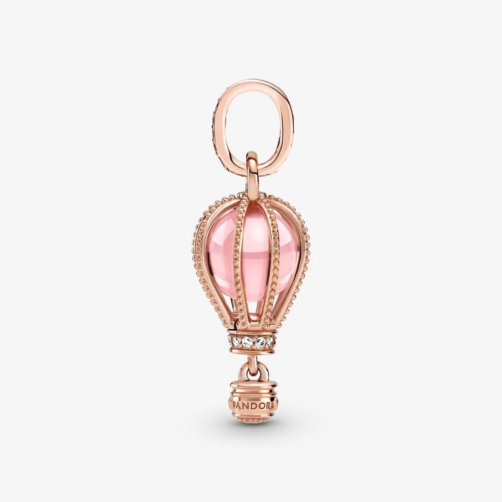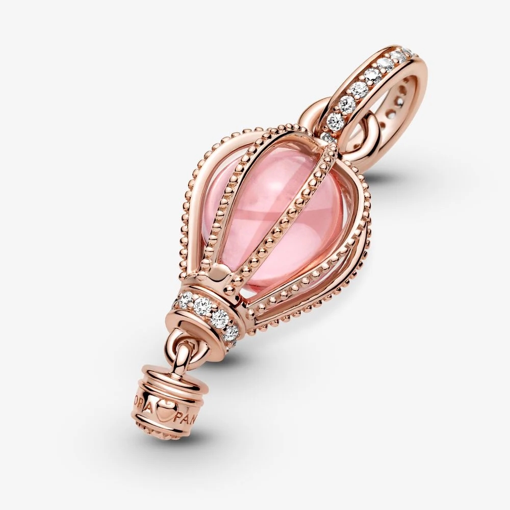 Wzbij się na wyżyny stylu z zawieszką w kształcie różowego balona. Kusi ciepłym blaskiem i została wykończona ręcznie z Pandora Rose (unikalnego stopu metali platerowanego 14-karatowym różowym złotem). Kryształ w bajecznym odcieniu różu jest opleciony kulkowymi linami, a głębię jego koloru dodatkowo podkreśla połysk przezroczystych cyrkonii sześciennych. Uchwyt zawieszki i podstawa balona skrzą się blaskiem kamieni pavé. Filigranowa gondola czeka, by zabrać Cię, gdzie tylko zechcesz. Będzie Twoim źródłem inspiracji, ale możesz też podarować go kobiecie gotowej wyruszyć na następną przygodę.