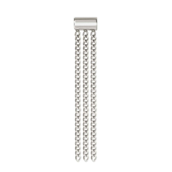 Stylowy wisiorek z trzema długimi łańcuszkami, wykonany ze srebra próby 925, pokrytego rodem, aby zapobiegać matowieniu.