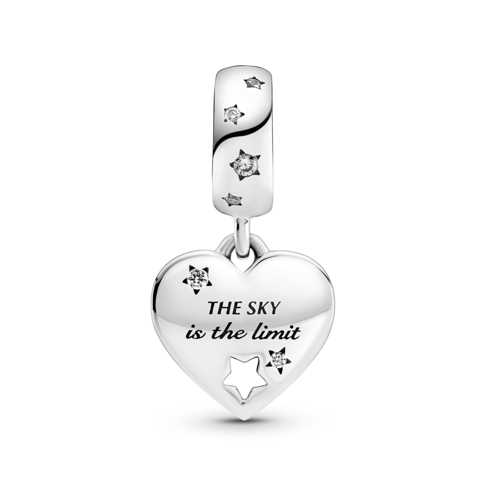 Wyraź to srebrną zawieszką z sercem i gwiazdami. Ten wykończony ręcznie charms został ozdobiony zawieszką z w kształcie serca z gwiazdką cut-out i grawerunkiem „You did it” na awersie, a na rewersie – grawerunkiem „The sky is the limit”. Uchwyt skrzy się pasmem wyciętych gwiazdek z przezroczystymi cyrkoniami sześciennymi. Pokaże, że jesteś z niej dumna, i każdego dnia będzie jej przypominać o ważnych osiągnięciach.