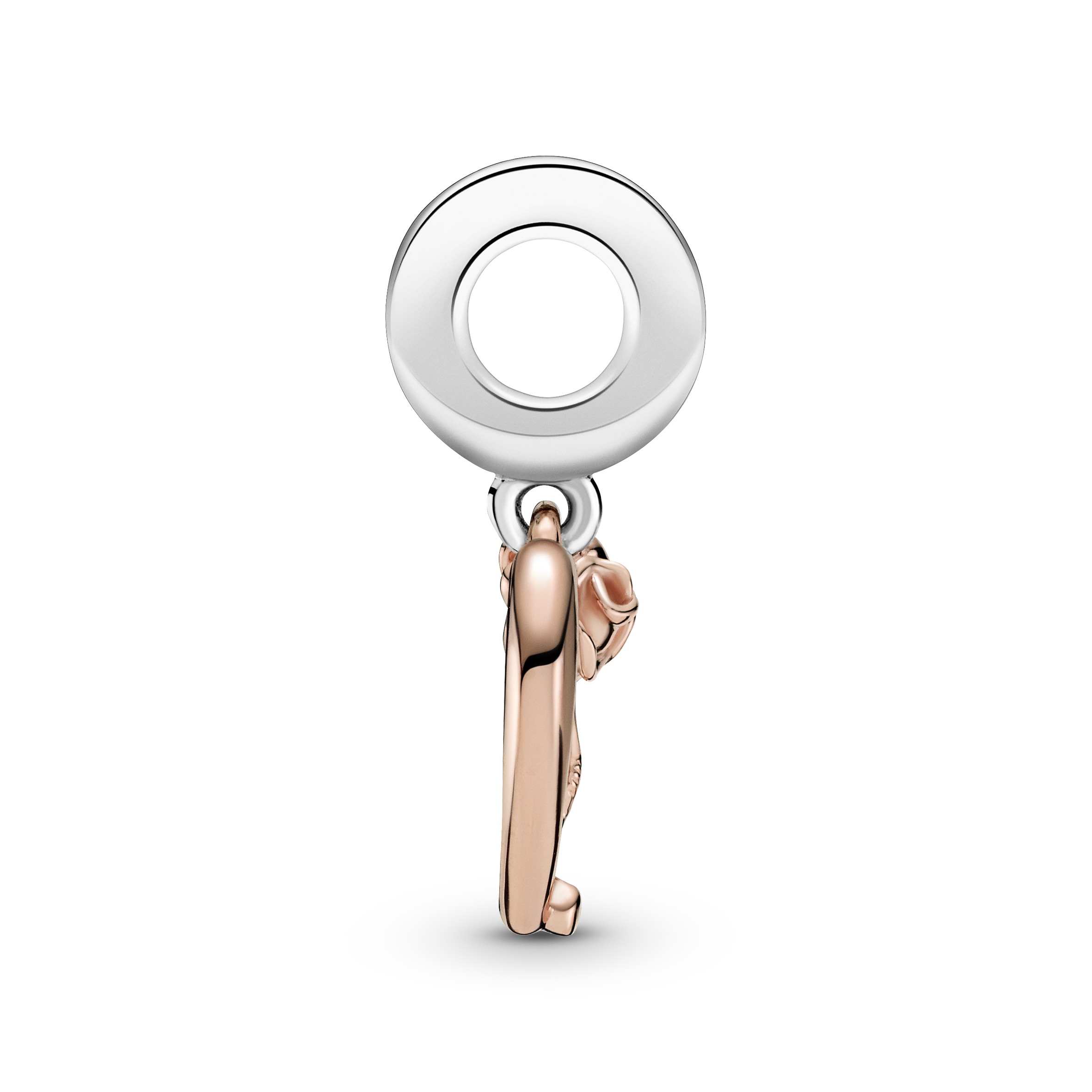 Otwarte obramowanie wykonane z Pandora Rose i kwiat róży nadają zawieszce romantycznego charakteru. Kłódka w kształcie serca nawiązuje do wiecznych przyrzeczeń.