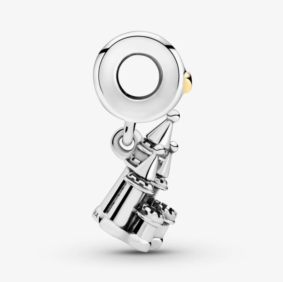 Poczuj odrobinę magii na co dzień dzięki tej dwutonowej zawieszce z zamkiem. Jej uchwyt został ozdobiony 14-karatowym serduszkiem, a w centrum srebrnego charmsa lśni monogram Pandora otoczony zamkiem 3D z trzema lekko oksydowanymi wieżyczkami oraz dwiema wieżami strzelniczymi. Na spodzie wybito okrągły znak próby złota oraz grawerunek „Life is a fairy tale”. Noś go, aby zawsze o tym pamiętać.